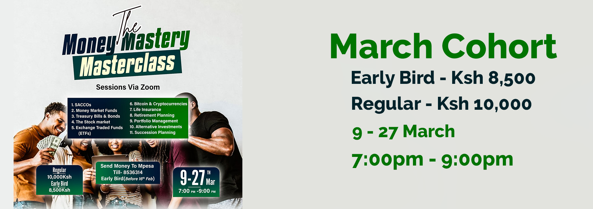 - What time will the sessions take place - 7:00 PM - 9:00 PM