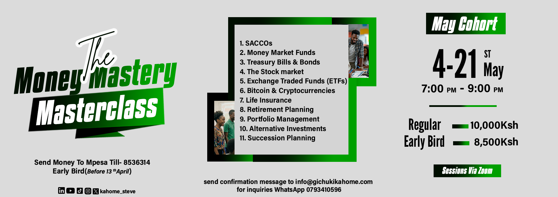 - Will the sessions be virtual or physical - Virtual via Zoom